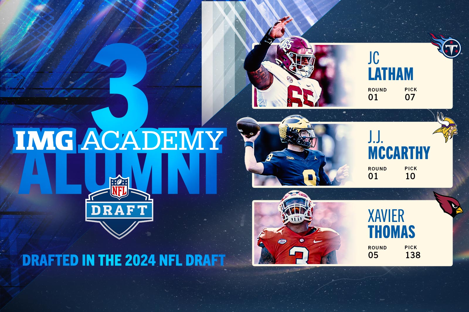 During past seasons, more than 400 coaches from over 200 NCAA Division I programs as well as U.S. military service academies and the Ivy League have visited campus to recruit student-athletes. With the growth of IMG Academy’s program, so too has the level of collegiate exposure each player receives. Across previous classes, more than two-thirds of IMG Academy football graduates have gone on to join NCAA Division I FBS programs.