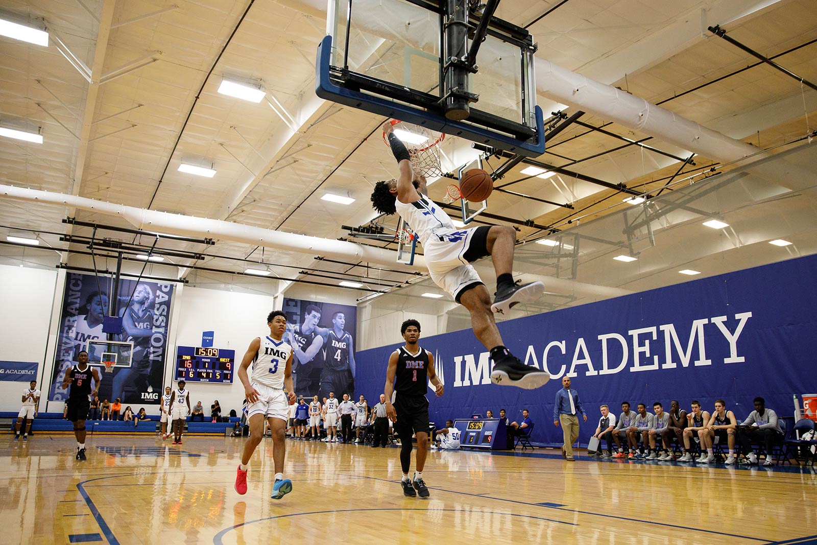 IMG Academy’s basketball gymnasiums consist of 4 state-of-the-art basketball courts, 24 baskets, video analysis capabilities, locker rooms, meeting spaces, and offices.
