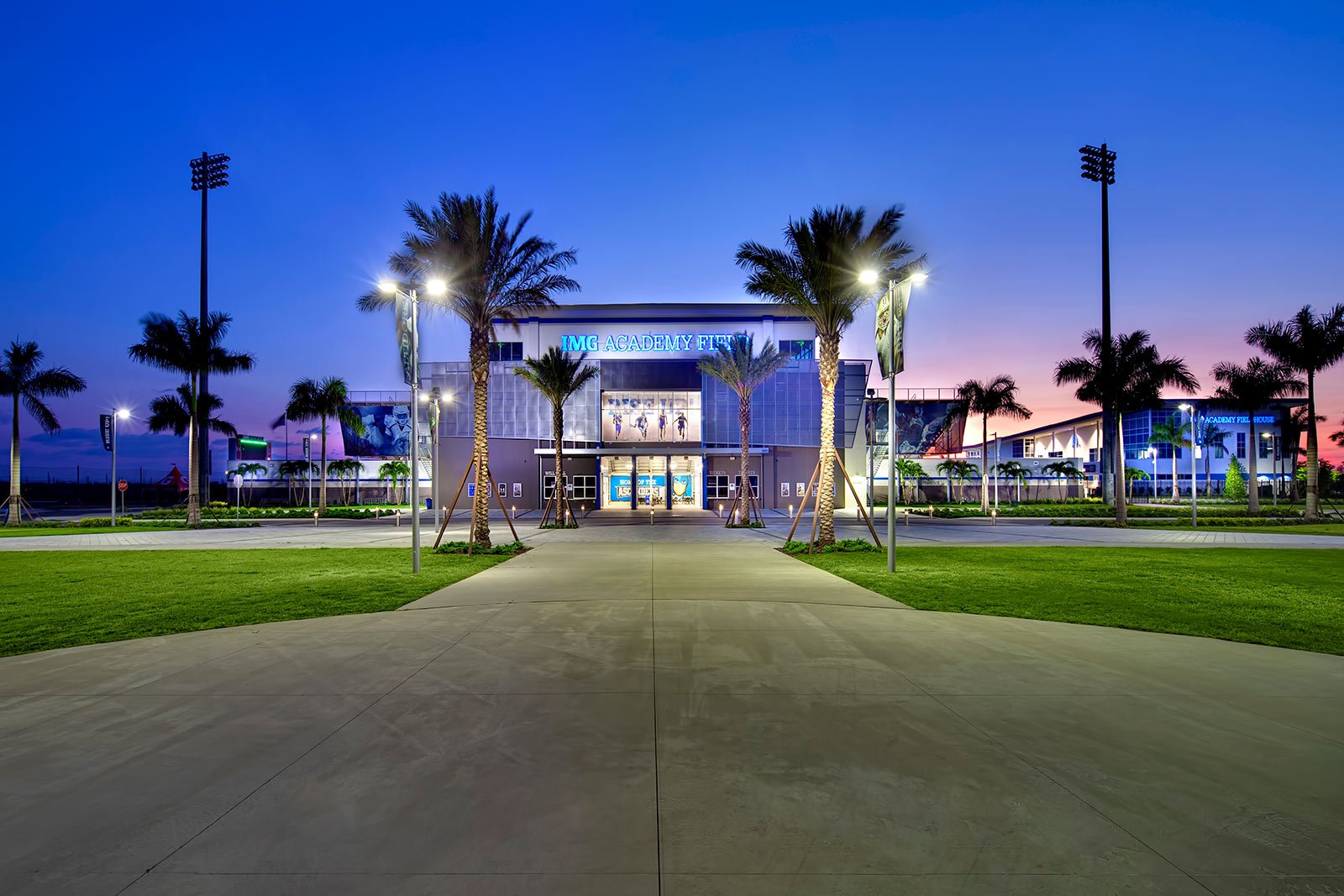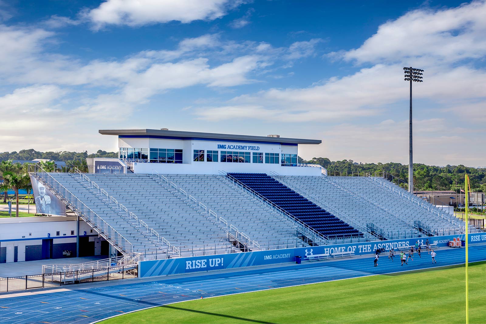 IMG Academy’s Stadium boasts a professional quality 5,000-seat stadium with luxury suites, upgraded club seating, broadcast-ready press box, and an advanced jumbotron system. The stadium serves as the home venue for the IMG Academy football, lacrosse, soccer, and track and field programs.