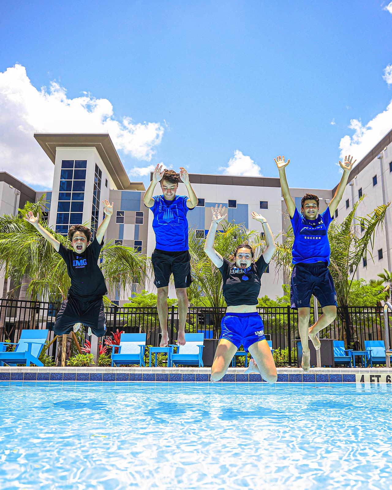 All campers also have the chance to unwind and hang out between camp programming sessions. The rec area between the residence halls includes a resort-style pool (with lifeguard), sand volleyball court, basketball courts, turf sport court, table tennis, and more. Other activities are planned, including movie nights on the pool jumbotron, pool parties and Campus Center activities.