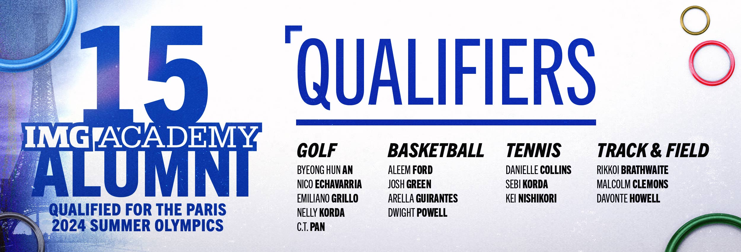 IMG Academy is honored to celebrate these athletes and their remarkable accomplishments. See below for the IMG Academy alumni participating in the 2024 Summer Games: